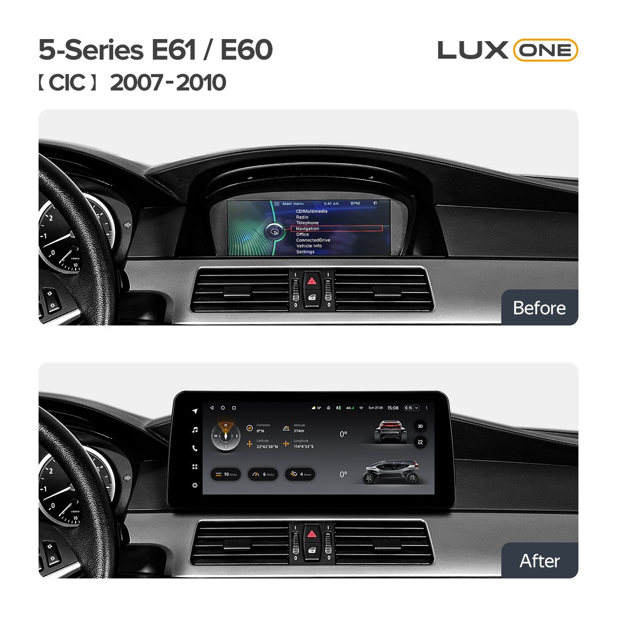 Магнитола BMW 5-Series E61 / E60 (CIC) 2007-2010 LUX ONE 12.3 дюйма