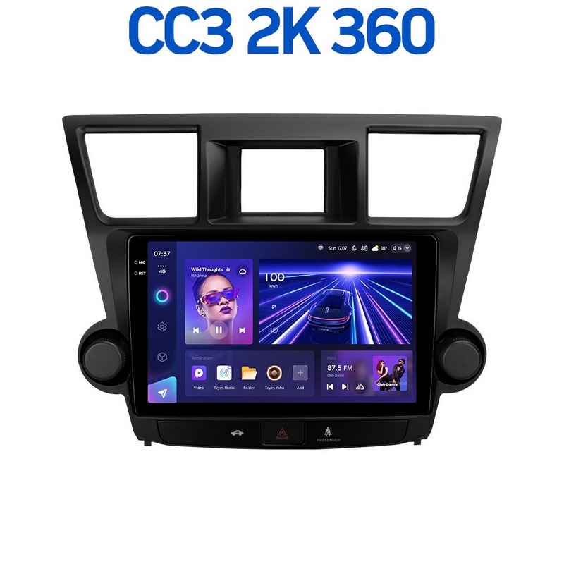 Магнитола TOYOTA HIGHLANDER 2007-2013 с ручками управления CC3 2K (360) 10 дюймов